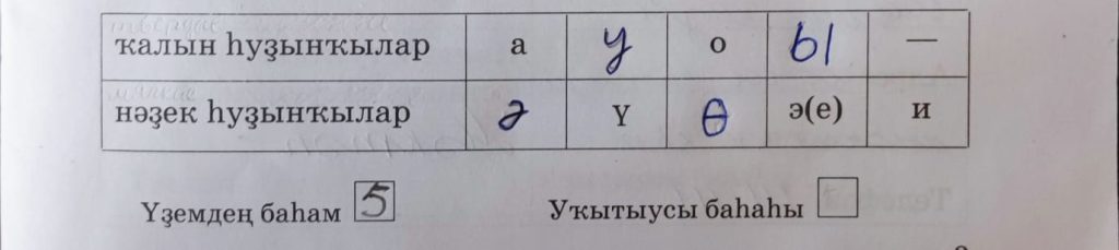 | нәҙек һуҙынҡылар (мягкие гласные) | ә | ү | ө | э(е) | и |