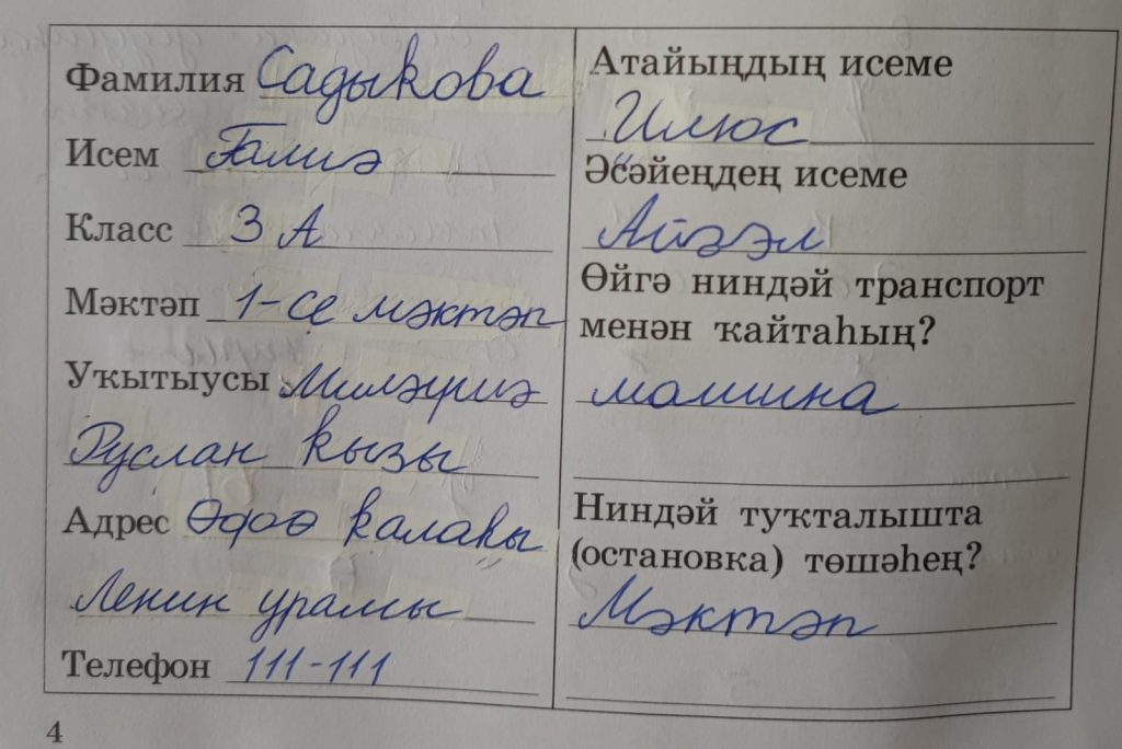 2-се дәрес (урок 2 страница 4) 2. Шәхес танытмаһын (удостоверение личности) тултыр.