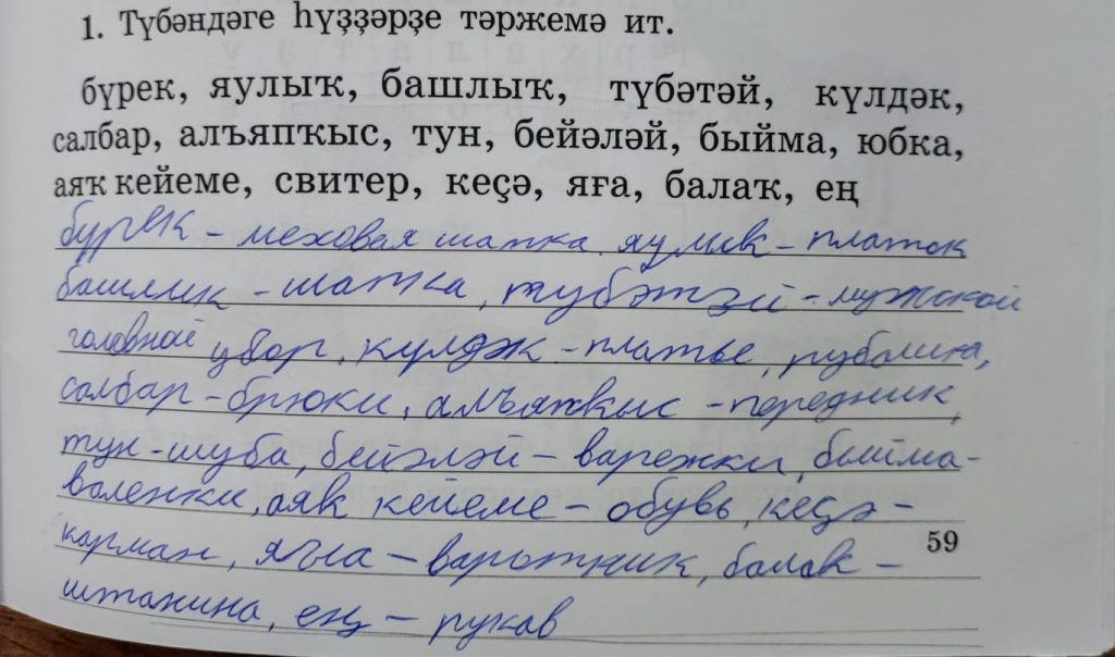 43-сө дәрес (урок 43 страница 59) 1. Түбәндәге һүҙҙәрҙе тәржемә ит.
