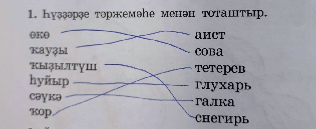 28-се дәрес (урок 28 страница 42) 1. Һүҙҙәрҙә тәржемәһе менән тоташтыр.