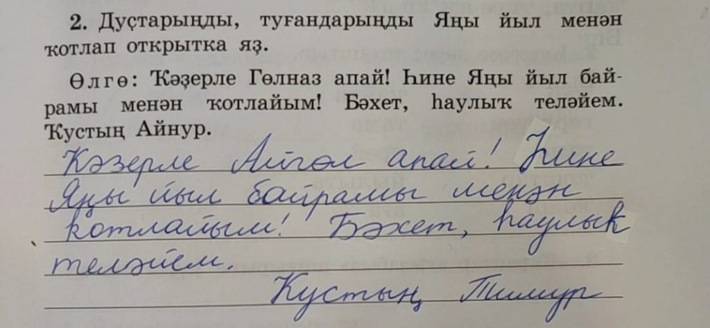 32-се дәрес (урок 32 страница 47) 2. Дустарыңды, туғандарыңды Яңы йыл менән ҡотлап открытка яҙ.