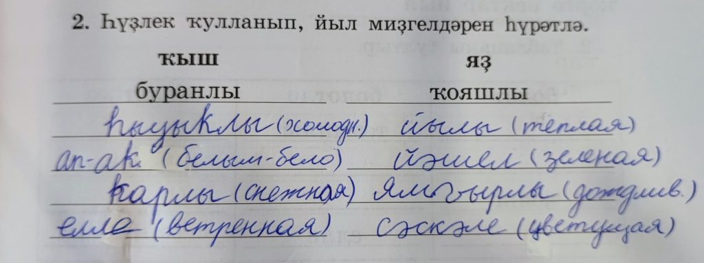34-се дәрес (урок 34 страница 49) 2. Һүҙлек ҡулланып, йыл миҙгелдәрен һүрәтлә.