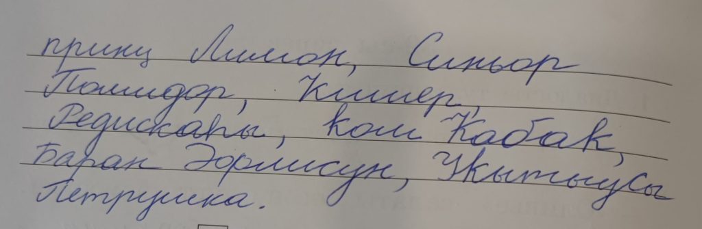 Дословный перевод задания: Напишите имена героев сказки Джанни Родари о Чиполлино.