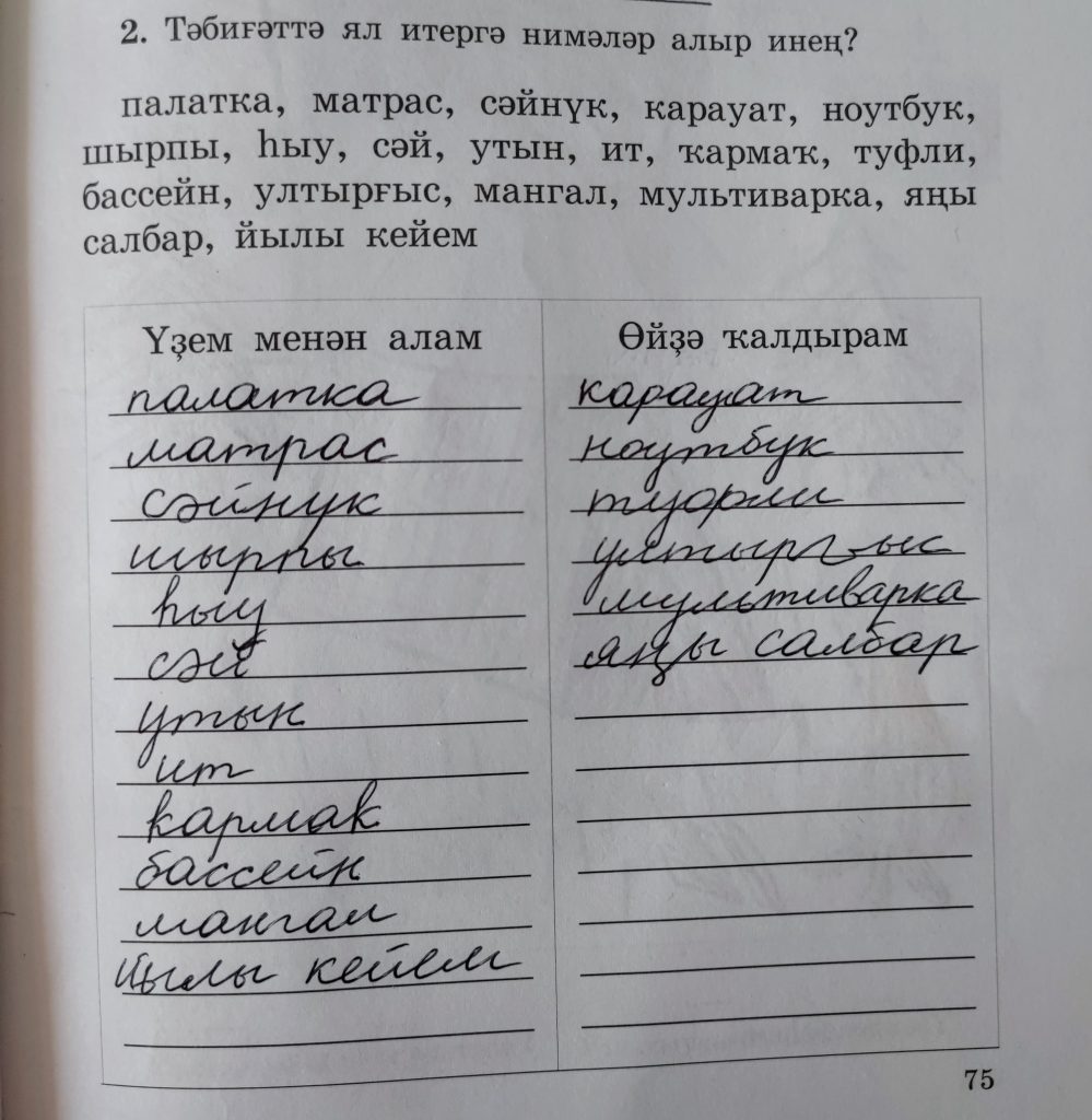 53-сө дәрес (урок 53 страница 75) 2. Тәбинғәттә ял итергә нимәләр алыр инең?