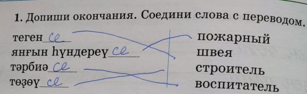 15-се дәрес (урок 15 страница 20) 1. Допиши окончания. Соедини слова с переводом.