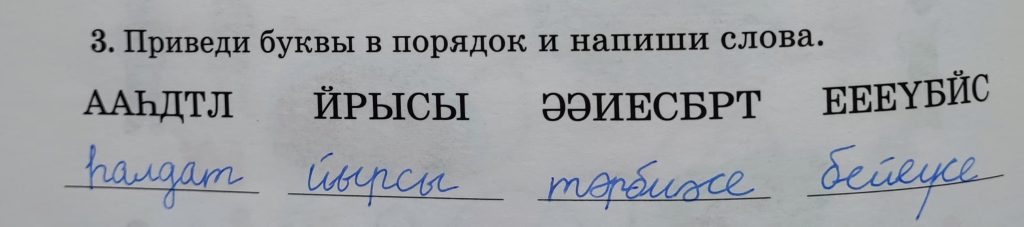 17-се дәрес (урок 17 страница 22) 3. Приведи буквы в порядок и напиши слова