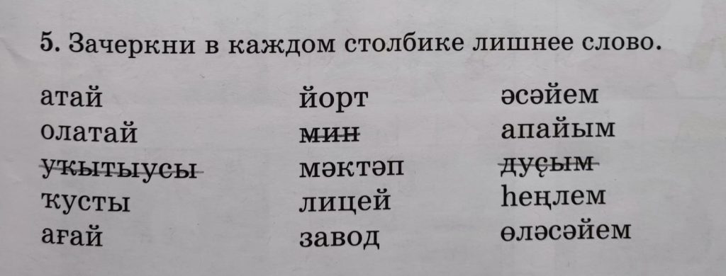 11-се дәрес (урок 11 страница 15) 5. Зачеркни в каждом столбике лишнее слово.