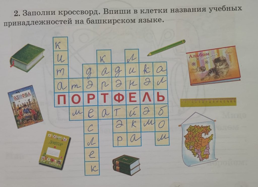 23-сө дәрес (урок 23 страница 31) 2. Заполни кроссворд. Впиши в клетки названия учебных принадлежностей на башкирском языке.