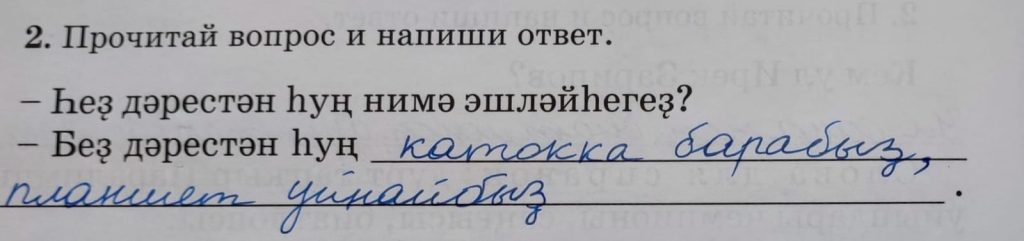 – Һеҙ дәрестән һуң нимә эшләйһегеҙ?