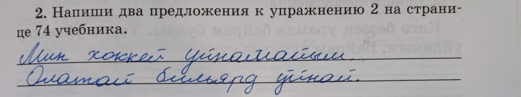 39-сы дәрес (урок 39 страница 51) 2. Напиши два предложения к упражнению 2 на странице 74 учебника.