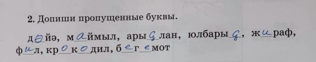 50-се дәрес (урок 50 страница 63) 2. Допиши пропущенные буквы.