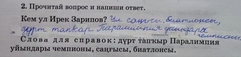37-се дәрес (урок 37 страница 49) 2. Прочитай вопрос и напиши ответ.