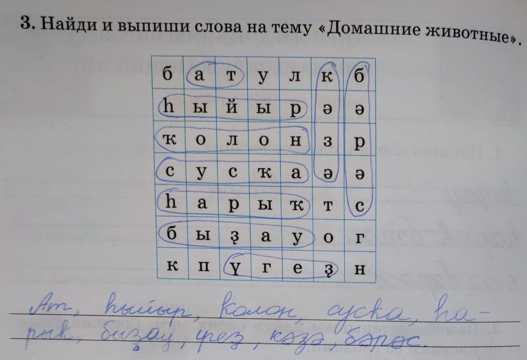 53-сө дәрес (урок 53 страница 68) 3. Найди и выпиши слова на тему “Домашние животные”.
