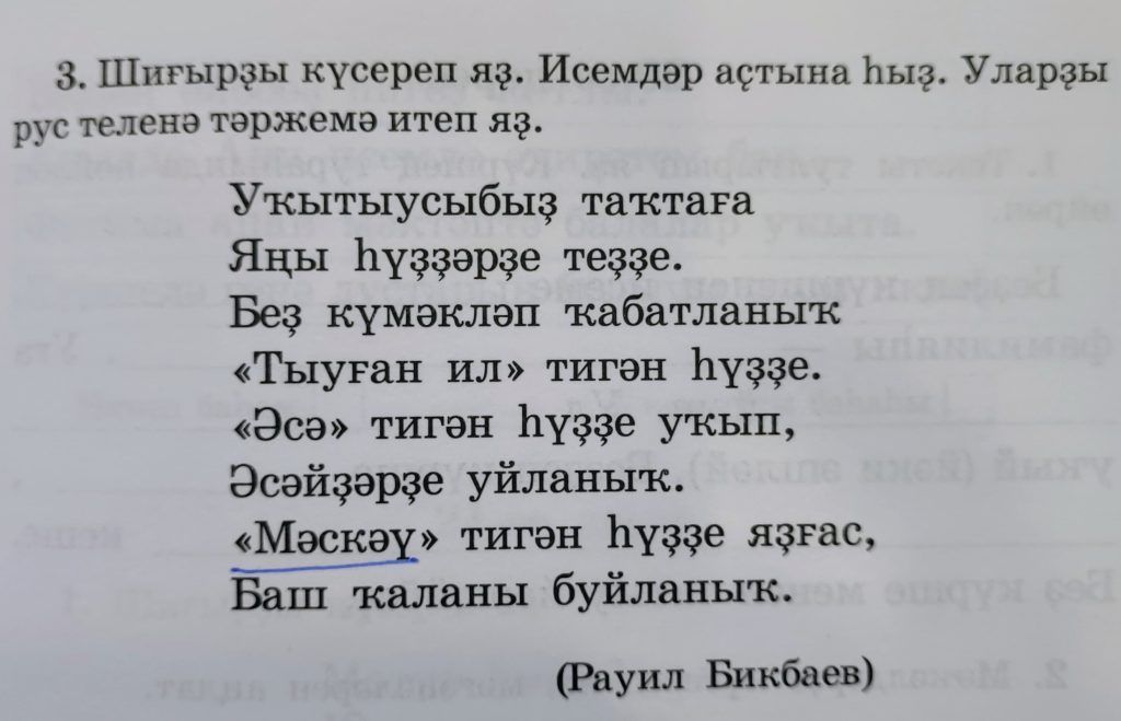 19-сы дәрес (урок 19 страница 29) 3. Шиғырҙы күсереп яҙ. Исемдәр аҫтына һыҙ. Уларҙы рус теленә тәржемә итеп яҙ.