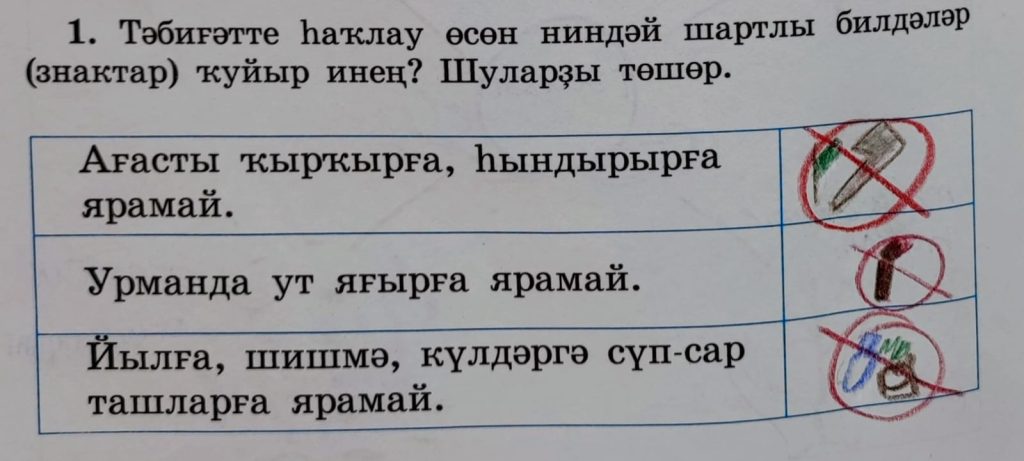 | Урманда ут яғырға ярамай. (В лесу нельзя разводить костры). | |