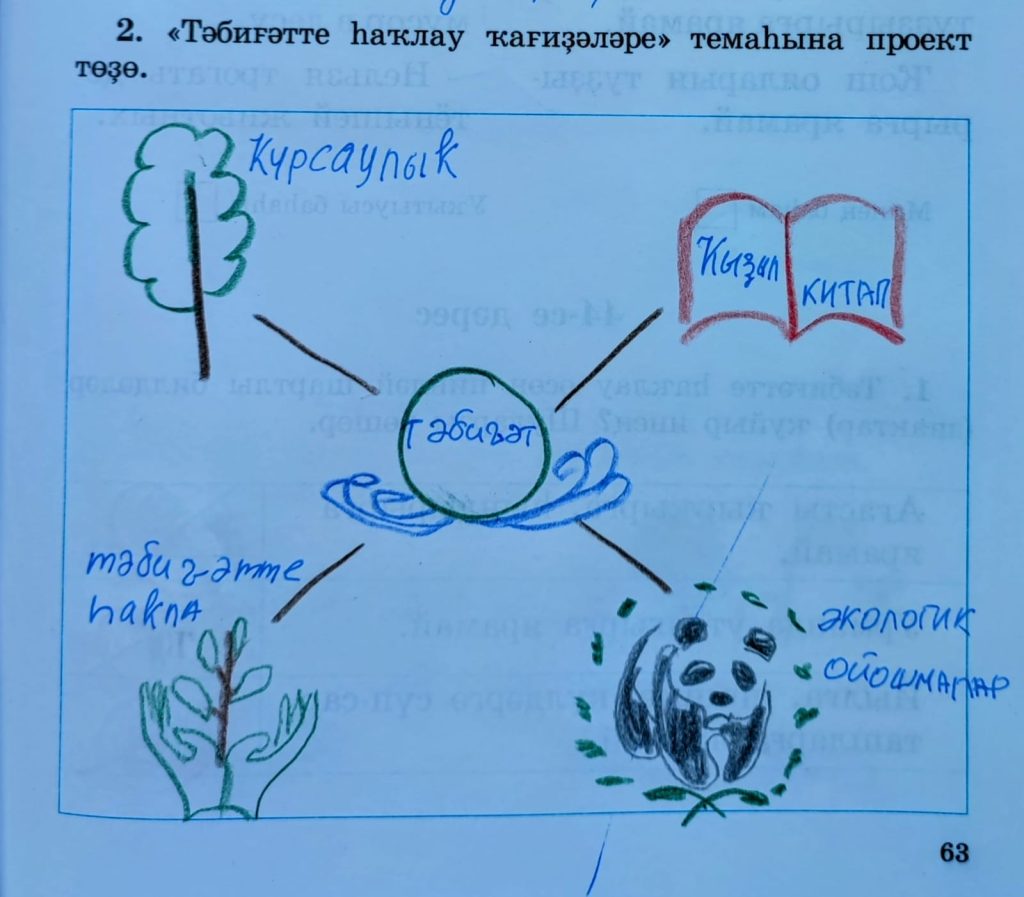 43-сө дәрес (урок 43 страница 63) 2. “Тәбиғәтте һаҡлау ҡағиҙәләре” темаһына проект төҙө.