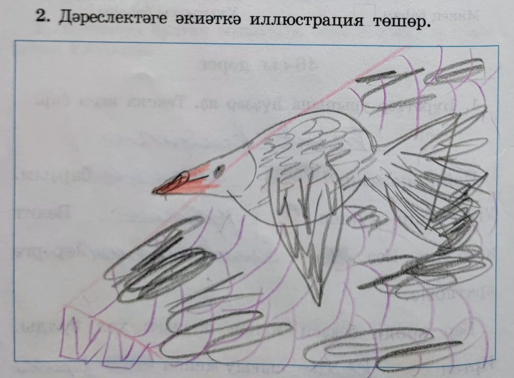 Дословный перевод задания: На сказку из учебника иллюстрацию нарисуй.