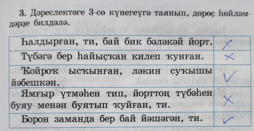 46-сы дәрес (урок 46 страница 68) 3. Дәреслектәге 3-сө күнегеүгә таянып, дөрөҫ һөйләмдәрҙе билдәлә.