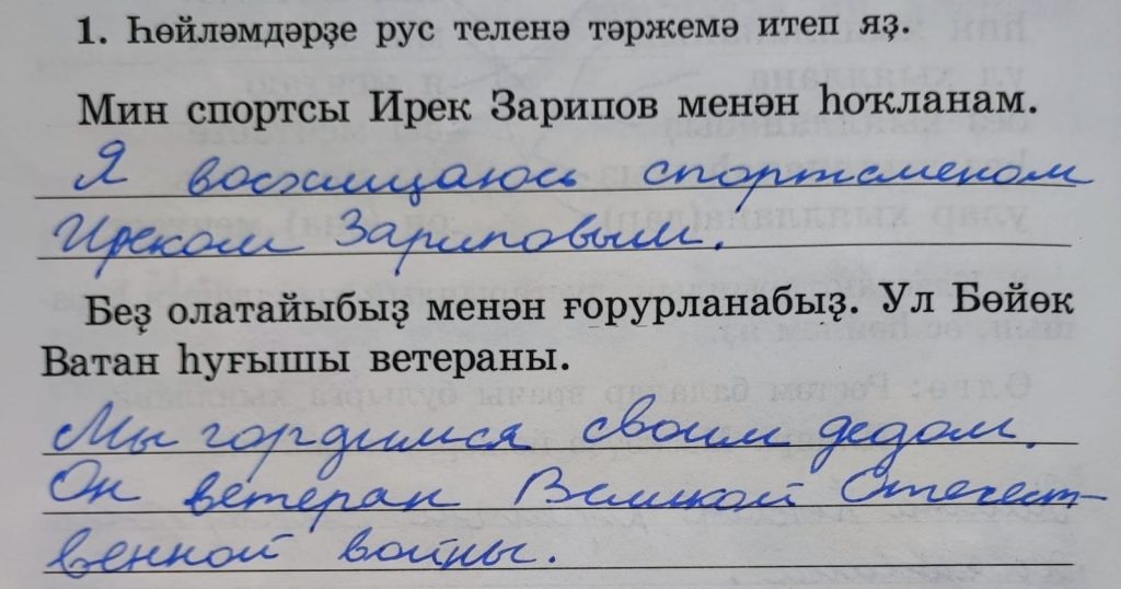 49-сы дәрес (урок 49 страница 72) 1. Һөйләмдәрҙе рус теленә тәржемә итеп яҙ.