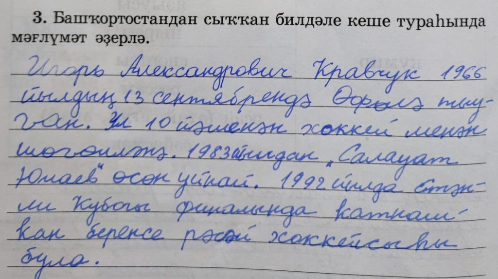 Дословный перевод задания: Об известном выходце из Башкортостана информацию подготовь.