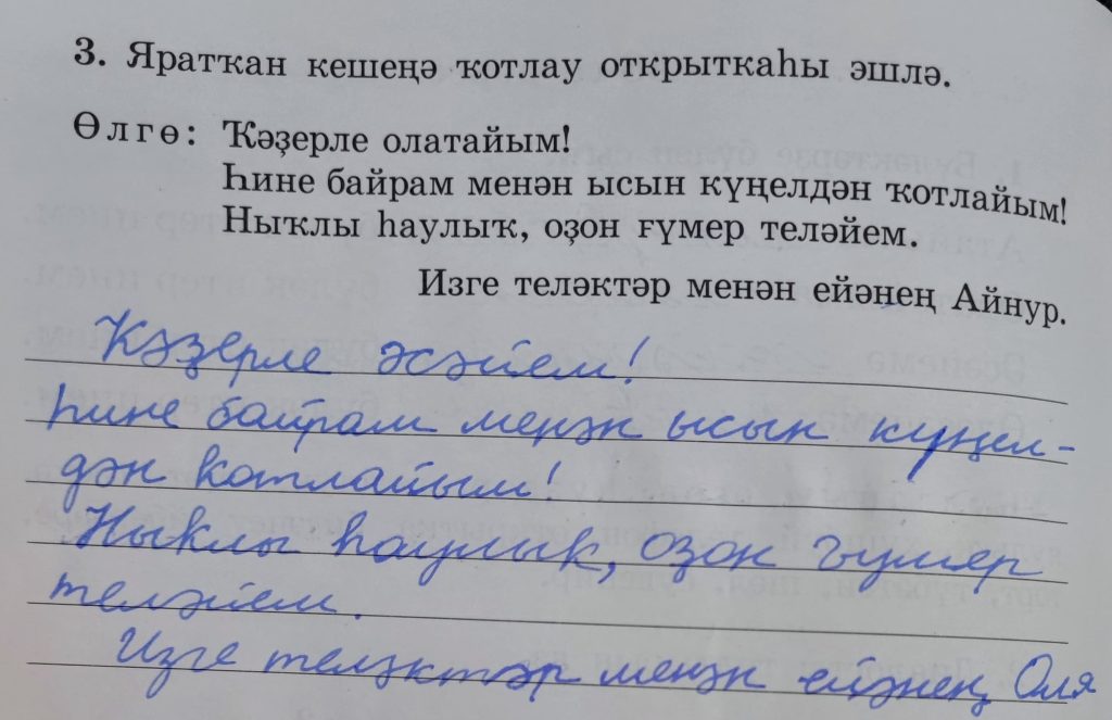 58-се дәрес (урок 58 страница 85) 3. Яратҡан кешкңә ҡотлау открыткаһы эшлә.